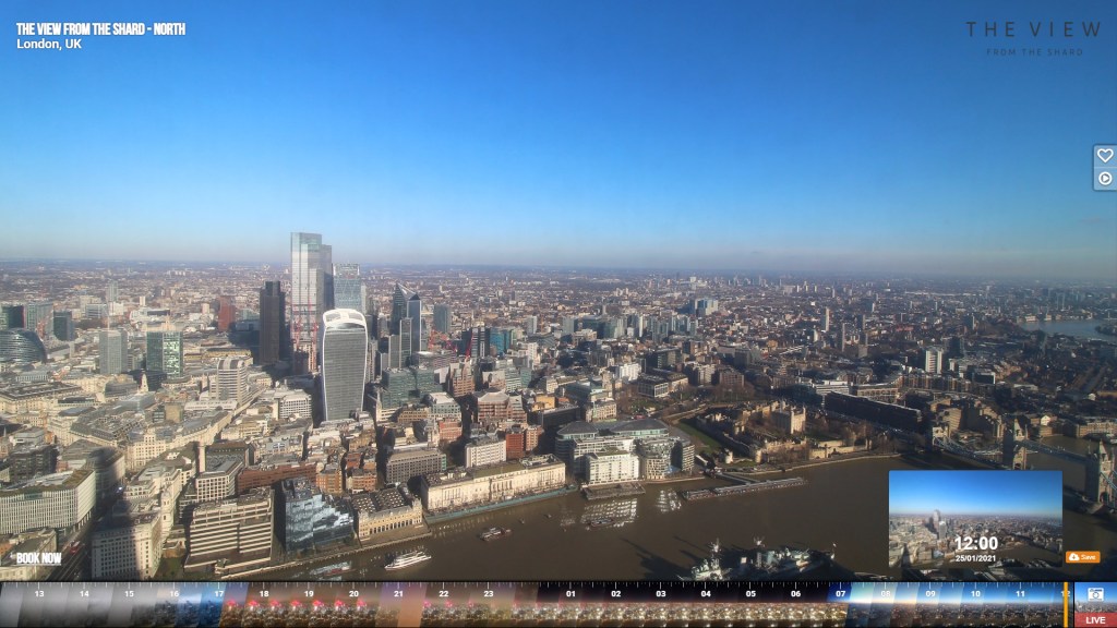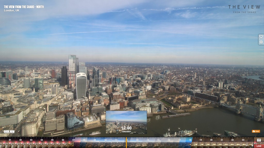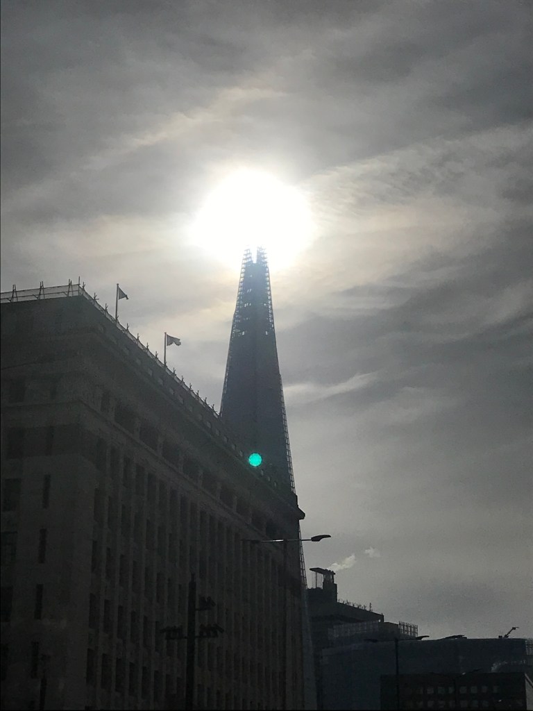 It’s also worth noting that the Sun is at pretty much 45 degrees according to the plot, maybe just shy, which means the shadow of the Shard is the same length as the Shard is high, 309.6 metres to its tip, so probably about 305 to its cleft. Some combination of all this triangulation will surely help place this one…